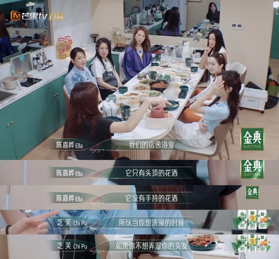 第五个觉得特别有意思的内容,是ELLA和CHIPU讨论洗澡时只有头顶的花洒却没有手持,所以不想淋湿头发的话只能考验自己的腰力了。