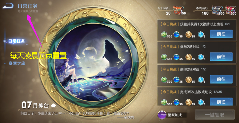 另外,值得注意的是,6号的活跃任务目前依然可以做,因为日常任务是每天凌晨五点重置的,这也算是任务党的福音了。目前王者荣耀已经开服,而且停机补偿也陆续发放了。话说,小伙伴们,你们准备好开始上分了吗?