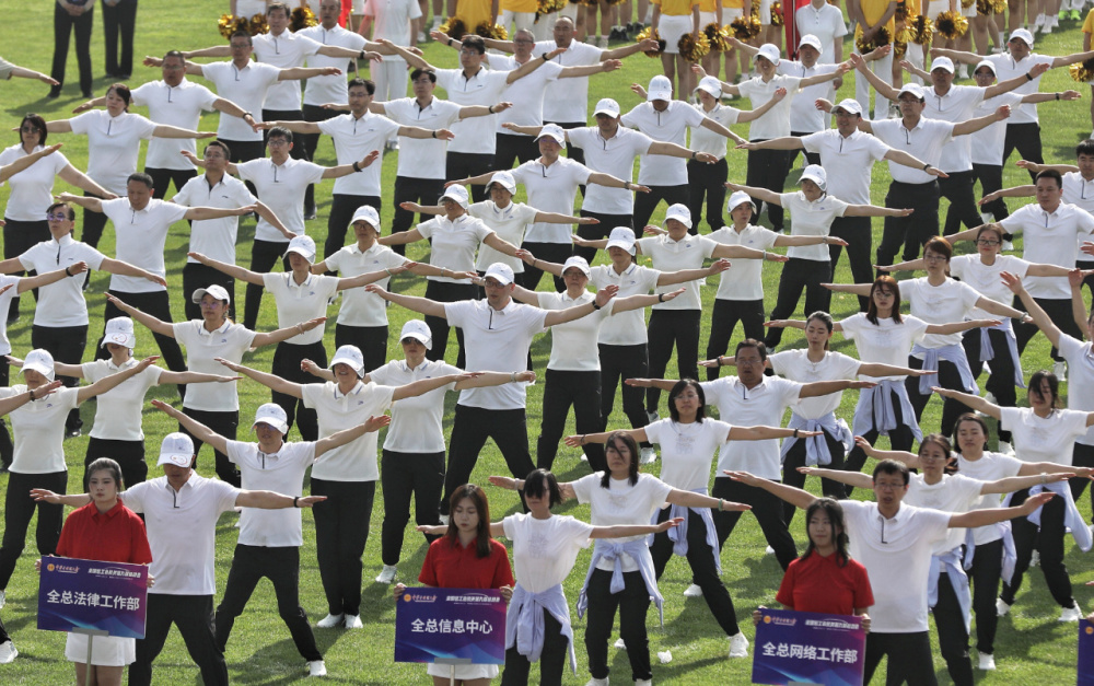 6月20日上午,北京国家奥林匹克体育中心迎来一批特殊的“运动员”——来自各驻会全国产业工会、全国总工会机关各部门和在京直属单位的39支代表队的1500余名干部职工相聚在运动场上,以奋发有为的精神状态和昂扬向上的奋斗姿态参加全国总工会机关第九届运动会。