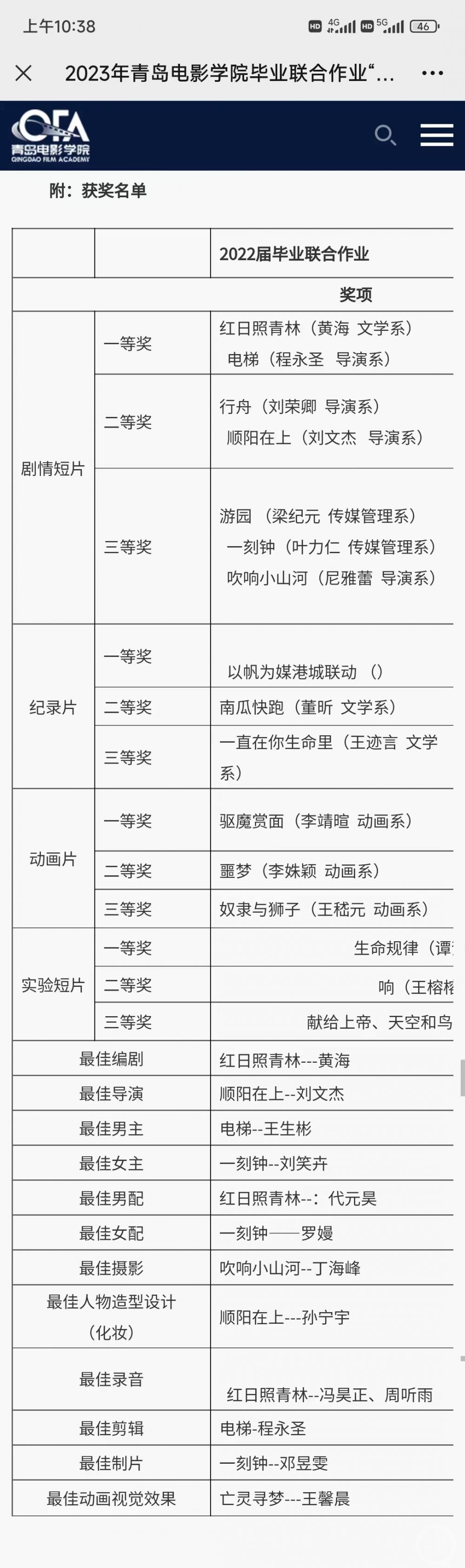 ▲详细获奖名单。