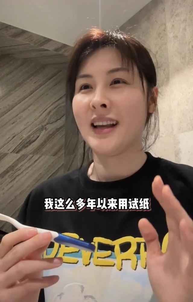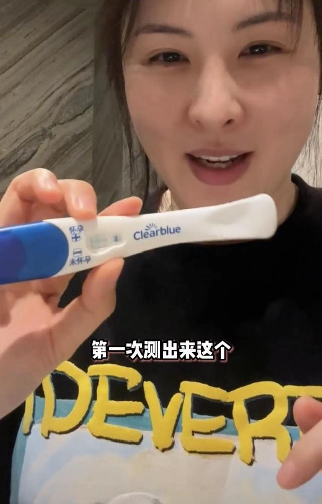只见刘南希在厕所里拿着验孕试纸,开心地对镜头说道,自己这么多年以来用试纸,第一次测出怀孕的两道杠。