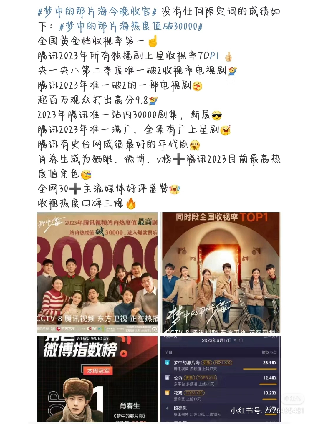 梦中的那片海更新到34集,感觉看了一个世纪,发现才开播16天。剧情饱满精彩,跌宕起伏,全是干货,时代写实,热血青春,怀揣梦想,筑梦未来,发人深省,激励当代年轻人树立正确的人生观、价值观,央视主推。央八、东方晚上黄金档,央一、东方上午白天档,腾讯。北京卫视的剧,到目前北京卫视自己还没排到,预估这几个电视台播完,才轮到北京卫视自己黄金档播。看完前20集你会发现自己才是剧中的小丑,打出的弹幕还没发出,剧情剧就反转啦。看后边,发现自己遇到的不顺根本不是事,是自己格局小啦。看剧要看剧评,都是神评,感觉自己读书太少了。