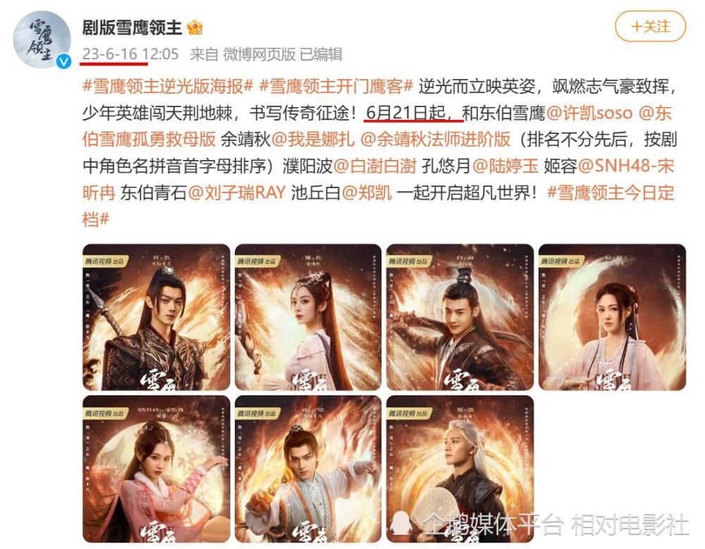 目前,该剧已官宣定档6月20日,就会迎来正式上线首播。
