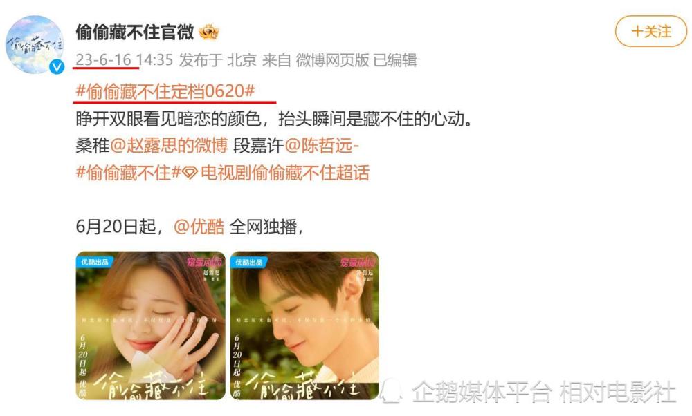 而且,该剧目前也已经官宣定档6月21日,与《偷偷藏不住》仅相隔1天,就会正式迎来上线开播。