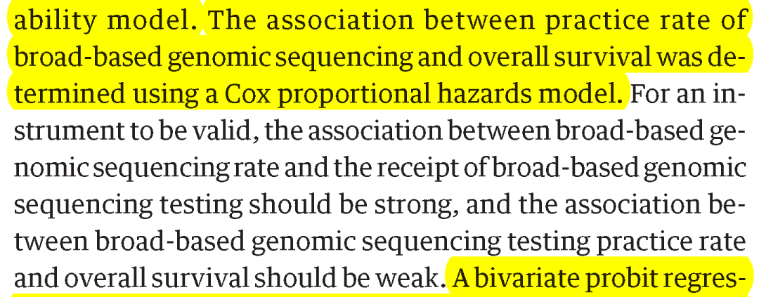 本文的工具变量为肿瘤诊所接受广泛基因测序的比例
