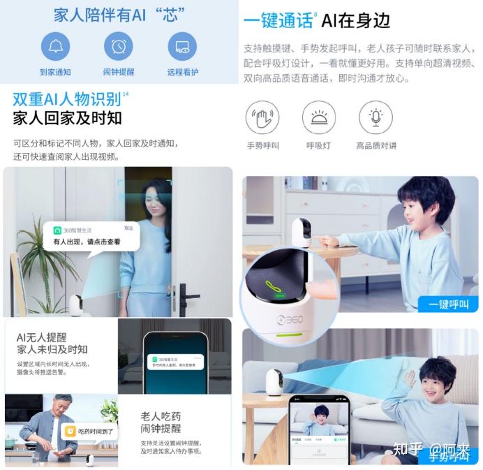 其最新款的8Max智能云台摄像机,除了基本的24小时守护、360°全景查看、回放和高品质通话功能之外,还提供了丰富的AI看护功能,包括AI人形侦测、AI哭声侦测、AI区域看护、一键&手势呼叫等功能。