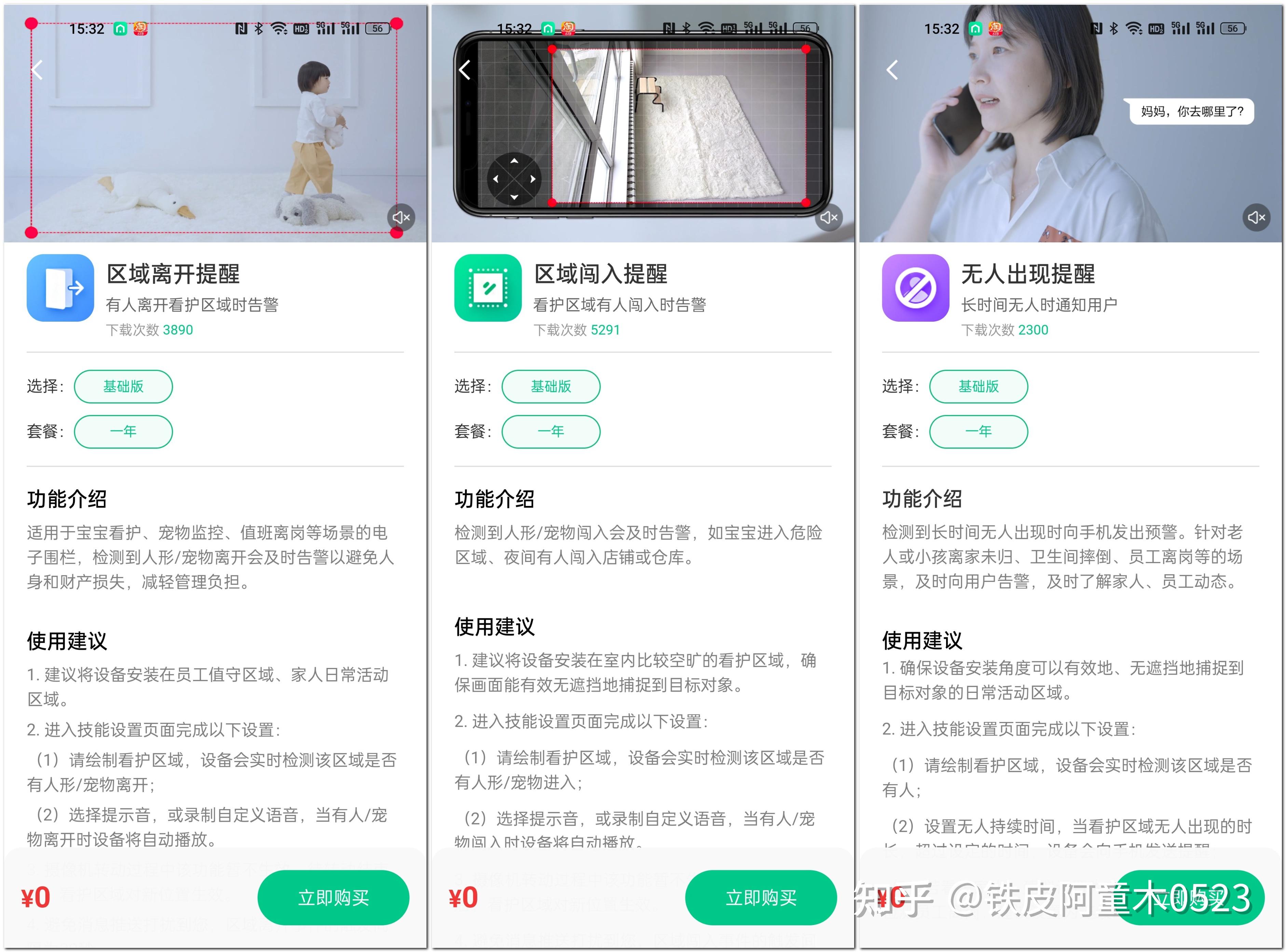 其中的AI区域看护功能,可以在区域内长时间无人出现或有人进入、离开区域时都发出手机消息通知,提醒家人及时关注老人和孩子。