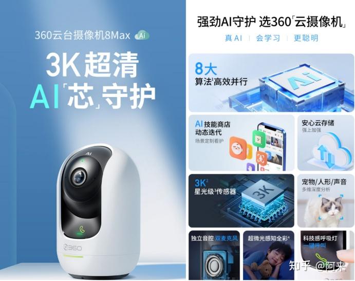 360是目前国内最大的网络安全公司,2015年正式推出360智能摄像机,超千万家庭购买过,是家庭智能安防行业的领先品牌之一。而这款云台8Max 是目前360安防家族里很推荐的一款,主打强AI看护。