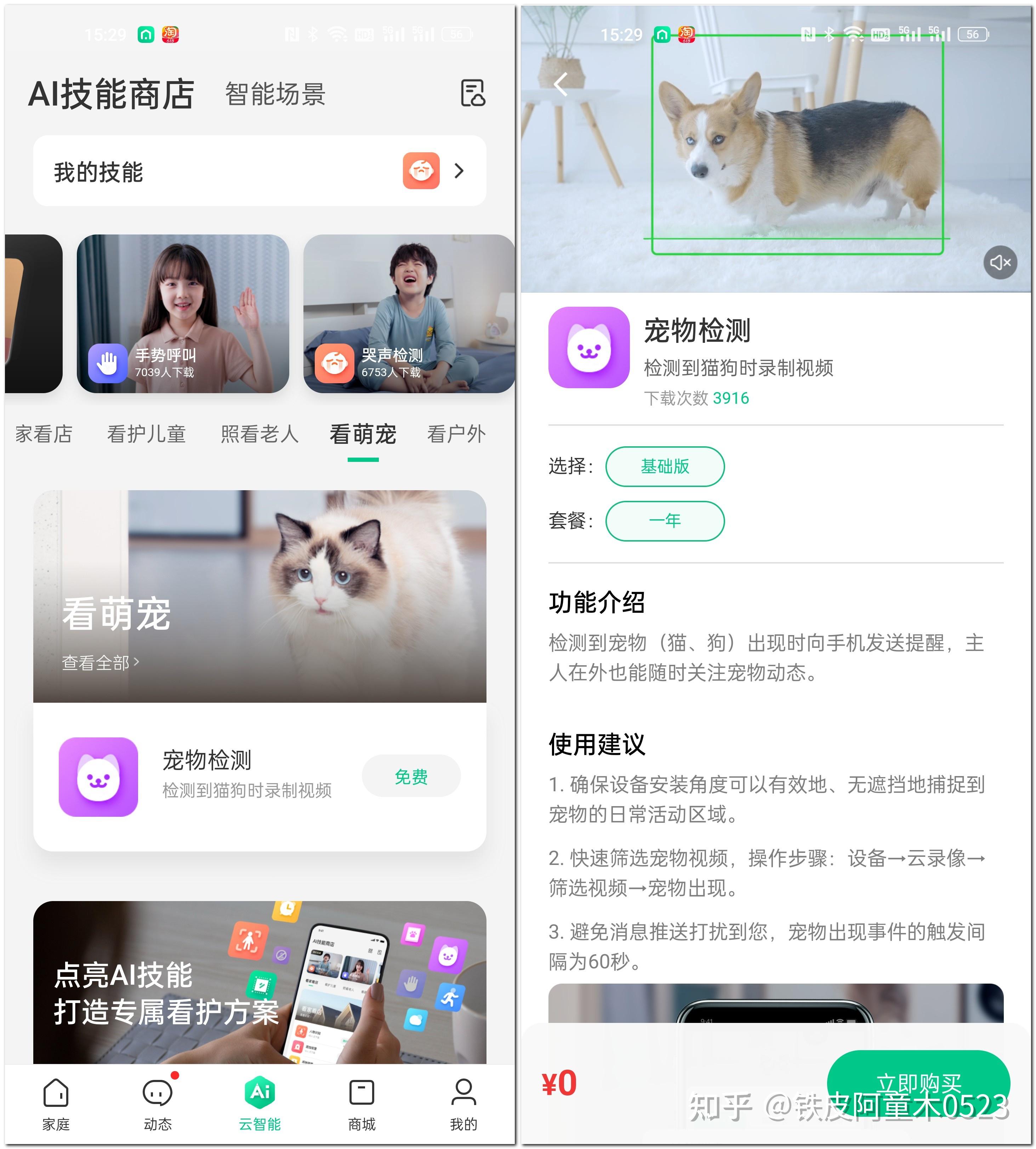 360 首款 AI 技能商店。买这台摄像机之前,我以为摄像机只有简单的监视、录像、调出记录的功能,但是我没想到,这台摄像机居然有AI 技能商店!就是说你可以在360智慧生活APP使用360 的首款AI 技能商店,它支持自定义配置下载所需 AI 技能,打造个人专属看护方案;多种 AI技能算法可兼容并行,扩展更多看护场景。