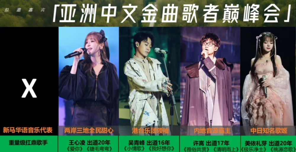 首当其冲的第一位受邀歌手是X身份,标签给到是重量级扛鼎歌手,并且是新马华语音乐代表。