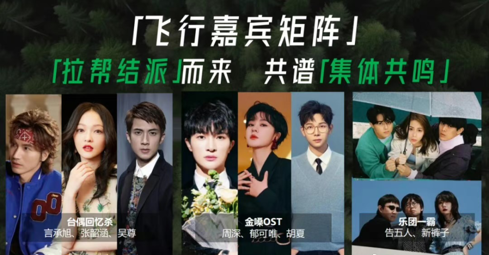 除了上述5位常驻歌手,还有8组飞行拟邀的宣传。