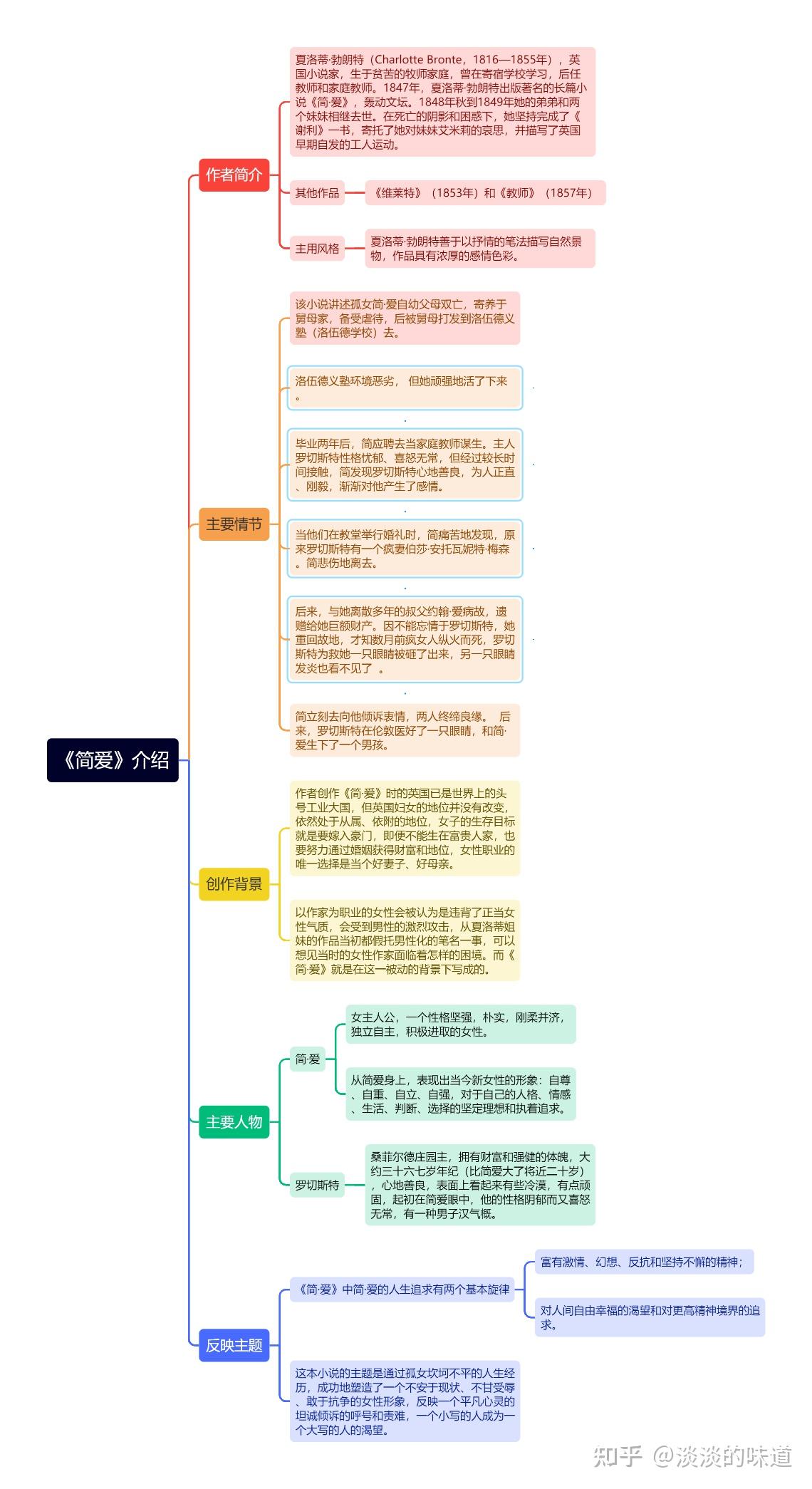 《简爱》是一部带有自传色彩的长篇小说,小说主要内容是女主人公简爱的成长历程,她从小失去父母,寄住在舅妈家,不平等的待遇让她饱受欺凌,小小年纪就承受了别人无法想象的委屈和痛苦。成年后,她成了桑菲尔德贵族庄园的家庭教师,她以真挚的情感和高尚的品德赢得了主人的尊敬和爱恋,谁料命运对她如此残忍,她为这段婚姻又付出了难以计算的代价,但自始至终她都一直坚持着自己的信念,执着自己的理想与追求。那么简爱具体讲了什么呢?橘猫整理了清晰的简爱思维导图合集分享给大家,下面我们通过简爱思维导图一起来看一下吧~
