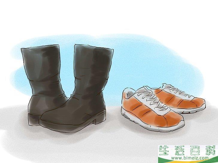 不管遇到什么情况,穿上护体的衣服比较妥当,以便应对任何危机:外星人入侵,陨石降落,太阳灼烧,山崩地裂。 世界末日可不是你袒胸露乳爱打扮的时候。如果你有时间的话,穿上结实的靴子,或者运动鞋。