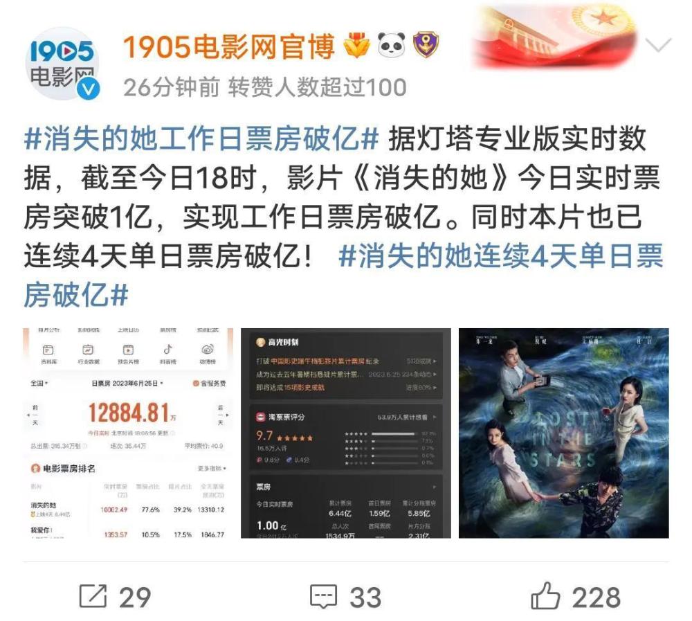 手机访问:wap.265xx.com电影院嫌钱烫手?票房占比如此逆天,就是不给《消失的她》加排片