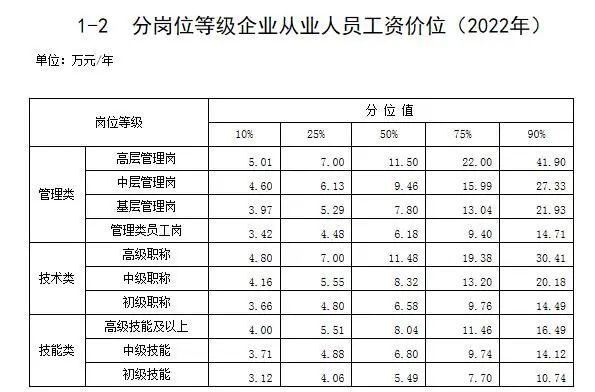 分岗位等级企业从业人员工资价位(2022年)。来自人社部网站