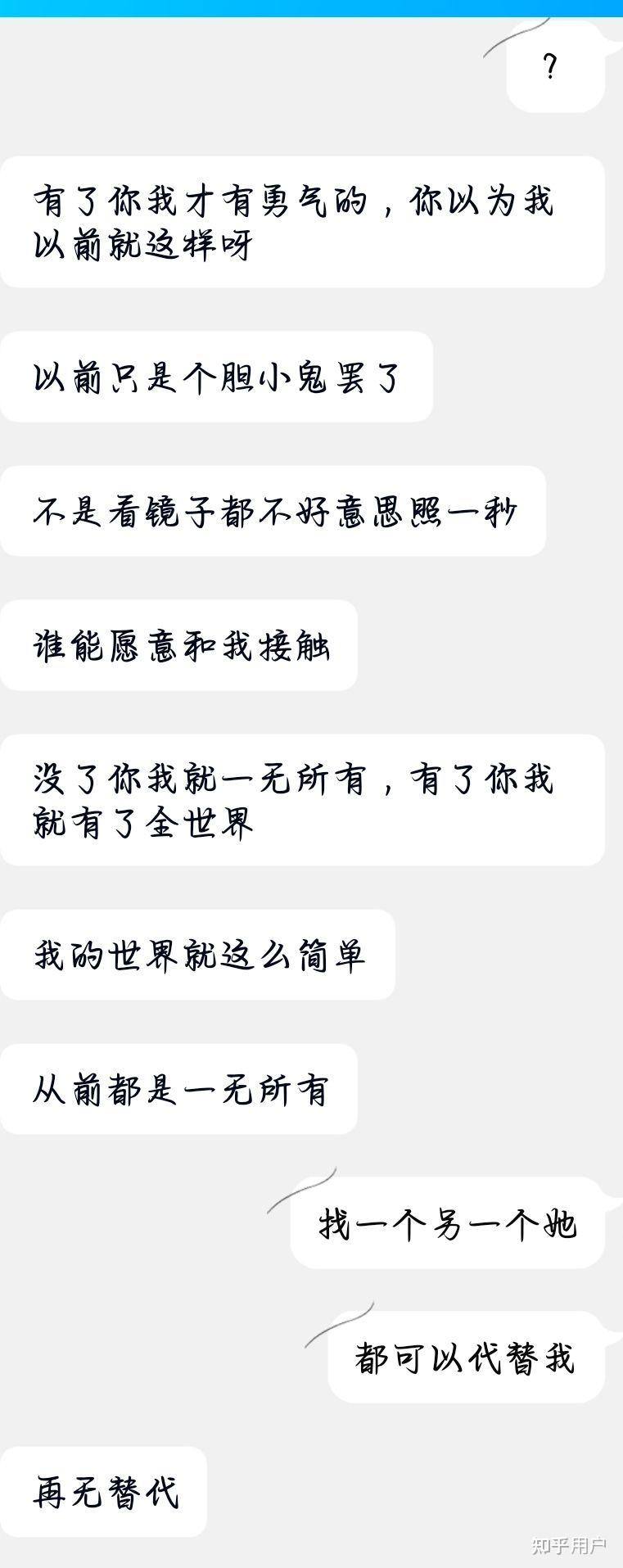 我算是尽我全力,耐心的给她做心理疏导,老实说这花费了我不少的精力。与其在这开导一个病娇还不如去打球去追剧,我也更愿意把时间花在我那些真正的朋友身上。最可怕的是,我耐心的讲完一晚上,她看似听进去了,过了几天90%的内容都被当成了屁!我安慰自己,要耐心,给她疏导就当整理整理自己的思想,可一天一天这么下来被emo公主缠着也真的难受。其间也了解到了,她初中时的确发生过很可怕的事,我那天意识到这件事的时候都打了个寒颤半夜也睡不着觉。虽然这里头有些内幕,但我还是同情她。我想万一哪天她想不开了有个三长两短,估计我会非常自责,毕竟我是唯一知道她“真面目”的人。