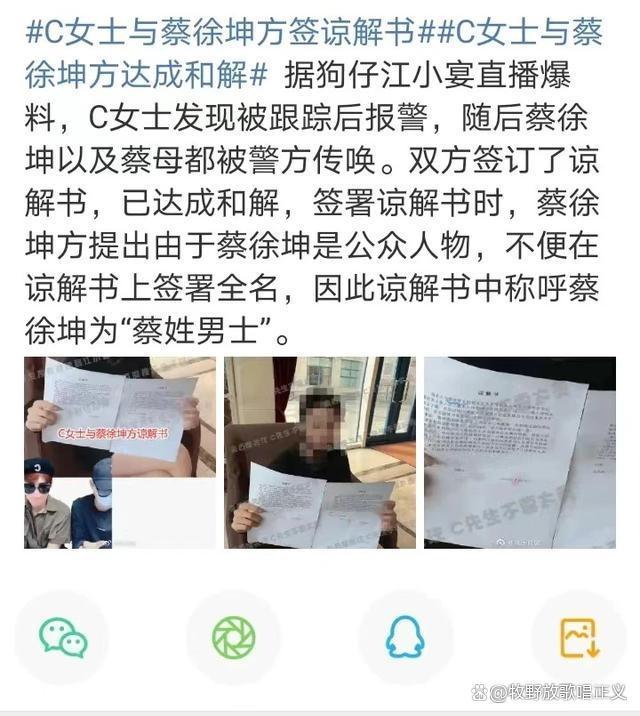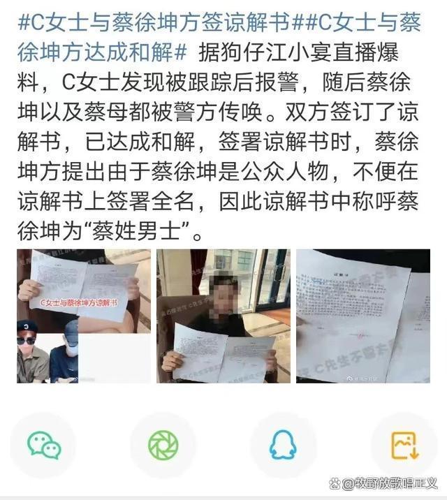 早前网上有消息称,小C在6月26日到蜀黍处报过案,小蔡、蔡母及参与了此事的小蔡方面的工作人员均到案,而蔡母雇佣的私家侦探被留下 喝茶了,小C在谅解书上签字、与小蔡“和谐”后,私家侦探也被放了出来 ——该声明也没有信得过只言片语的说明,不免令人失望。