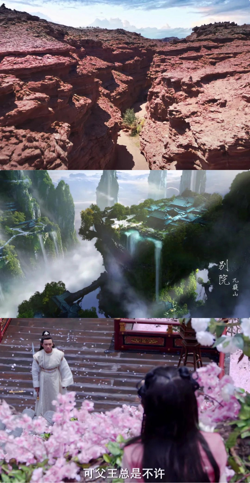 剧里的置景和特效也非常不错!大漠实景拍摄很真实和震撼,小朱颜城墙上摘花的景色也美不胜收,九嶷山云雾缭绕、飞瀑流泉宛若仙境……那些空镜都好美,这画面观感是真的让人心情舒畅。网友都惊喜表示,“这就是顶级仙侠的排面吧!”