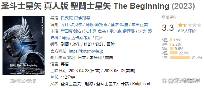 《圣斗士星矢》真人版由日本与美国合作拍摄,由汤梅克·巴斯基执导,乔许·坎贝尔、马修·史都肯和基尔·莫瑞共同编剧。该片改编自车田正美的同名漫画,相信是不少人的童年回忆了,主演包括新田真剑佑、法姆克·扬森、麦迪森·伊瑟曼、迭戈·提诺可、马克·德可斯可、尼克·斯塔尔和肖恩·比恩。