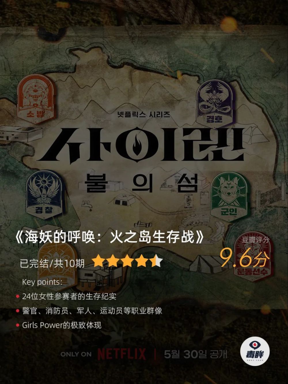 ②全女综艺天花板,豆瓣评分高达9.6的韩综《海妖的呼唤:火之岛生存战》绝对是6月最不可错过的综艺节目,值得一看!