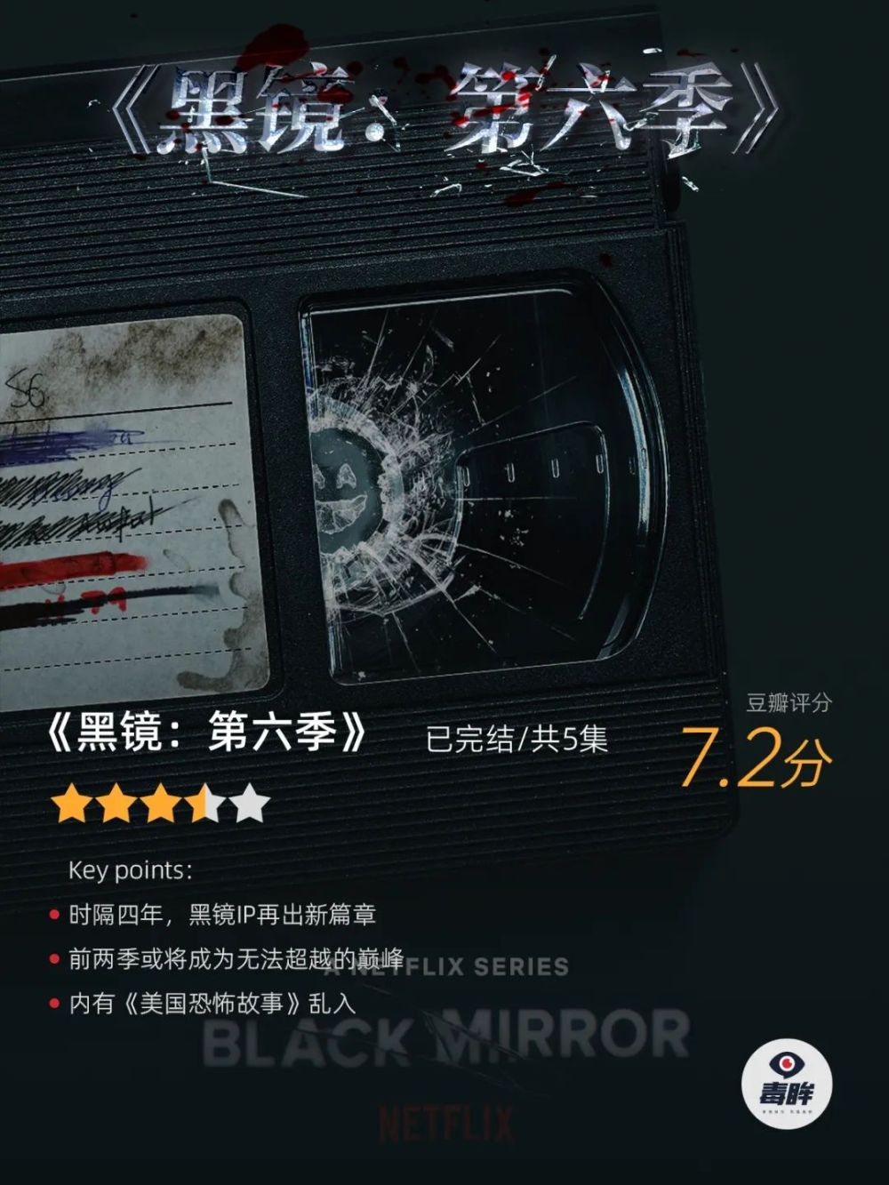 ①距离《黑镜》第一季播出已经有12年,作为很多人心中的“科幻启蒙”,《黑镜》的口碑一直起起伏伏,如今第六季时隔四年后重启,可惜观众们看起来不太买账。♂?