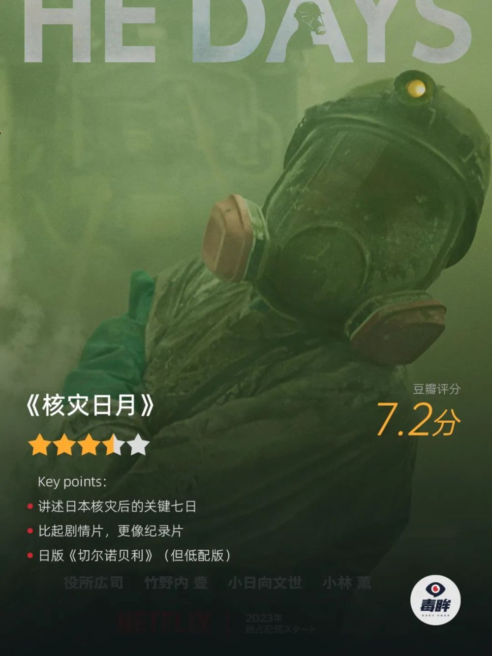 ④日剧再挑战灾难题材??,《核灾日月》记录了2011年福岛核事故发生后一周内的故事。节奏稍慢,但胜在真实还原,对这类题材感兴趣的朋友们可以一看。