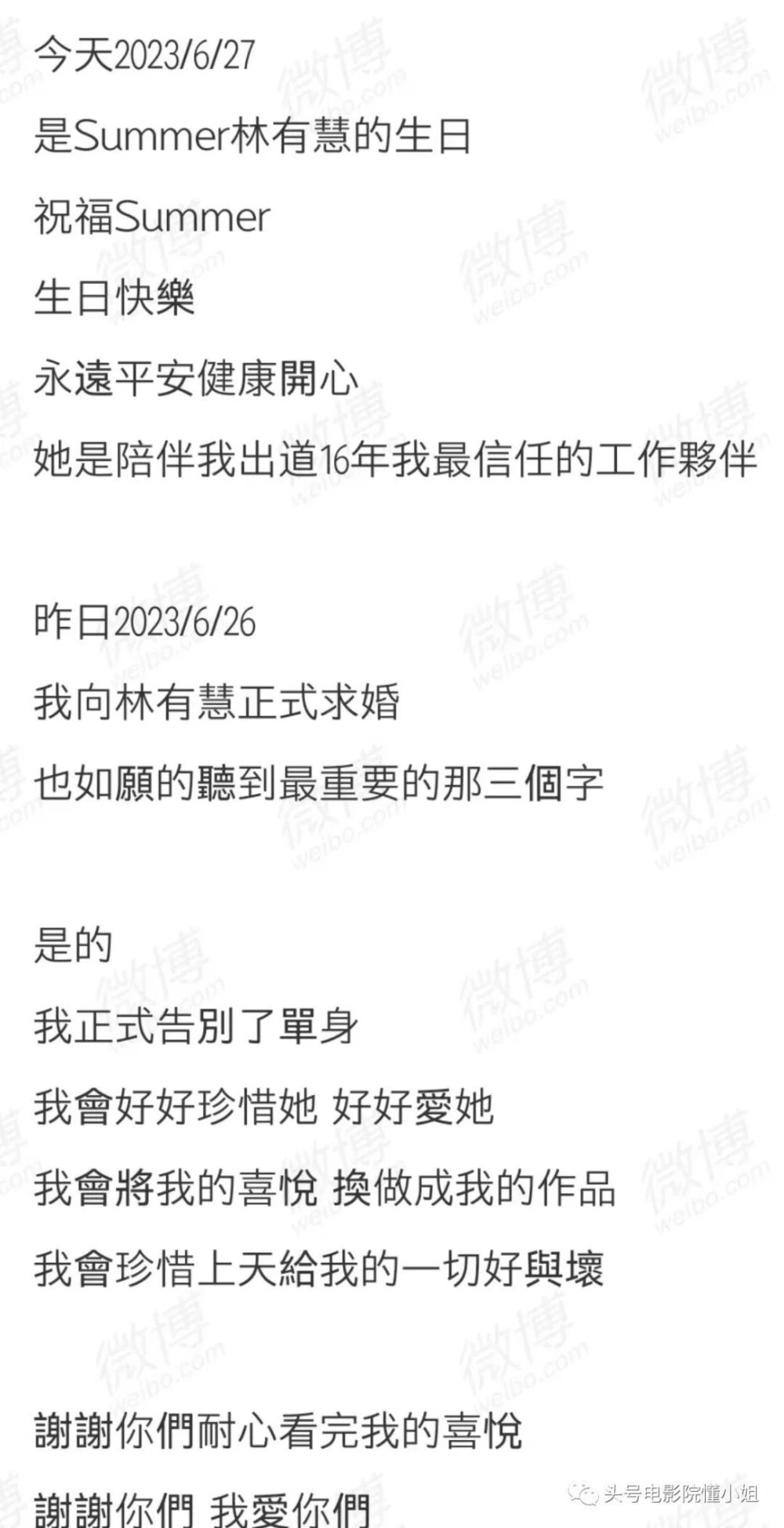 很开心我的人生走到了这个阶段,希望得到你们的祝福,我也祝福你们找到真正属于你们的幸福。