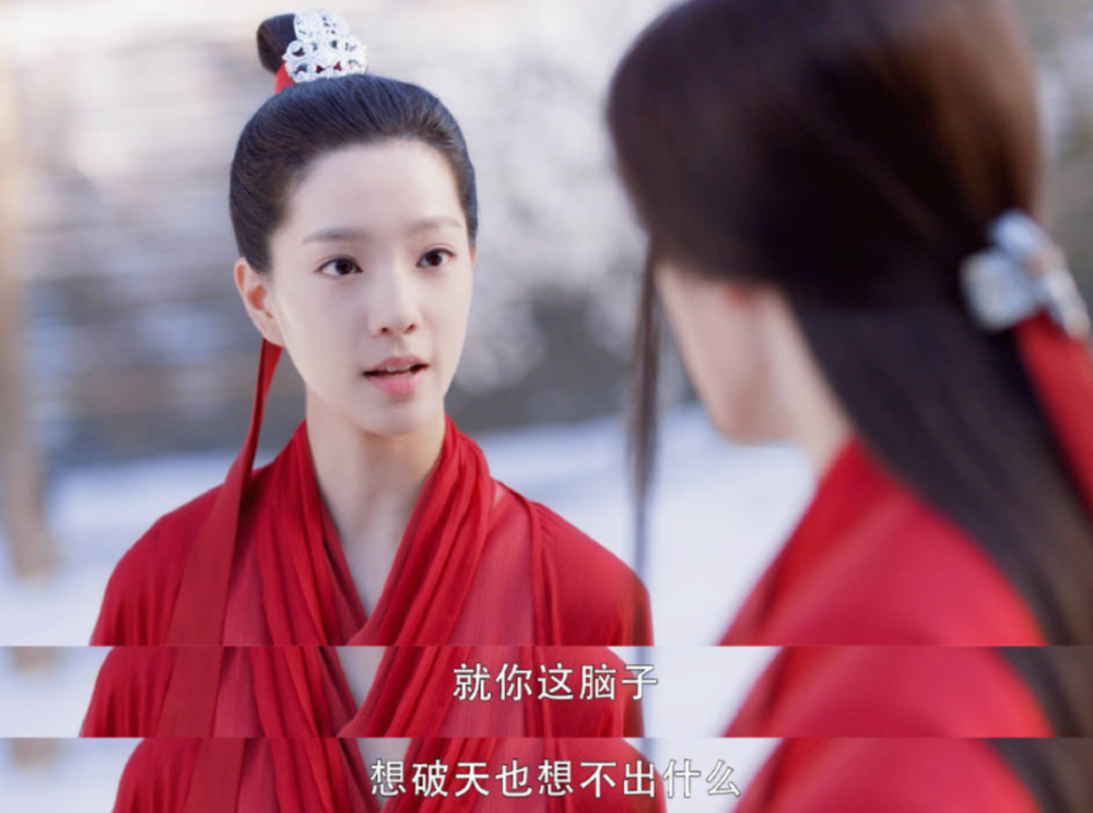 脸盘子也很大,她在拍摄《玉骨遥》时似乎发胖了,整个人肉肉的。某些镜头可以看出她的双下巴,整张脸都显得很钝。