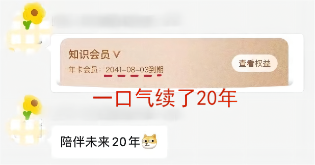 若你还不是知识会员,也许会不解,为何老会员们都像参加接力赛一样续订它,有一位甚至已经续到了2041年……