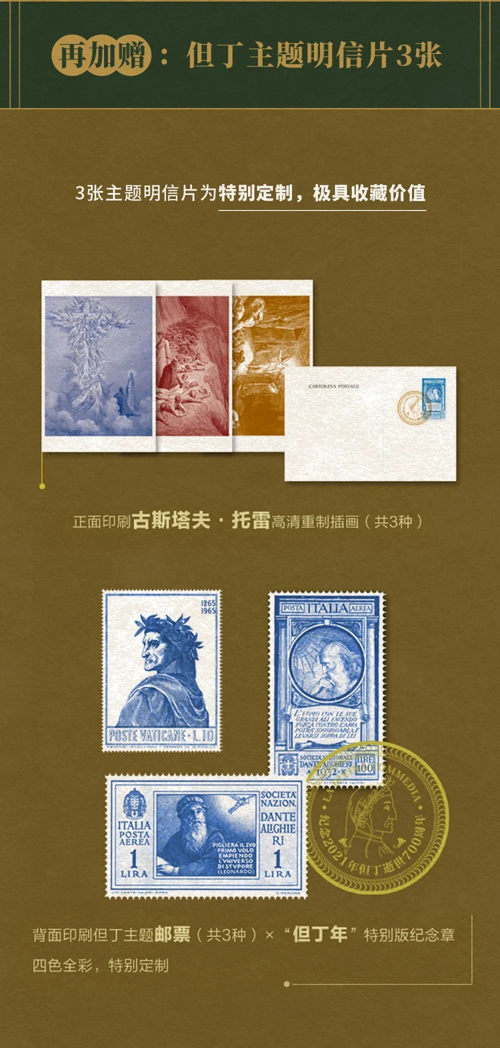 随书附赠但丁主题精美明信片3张,绝对是但丁迷的超级福利!