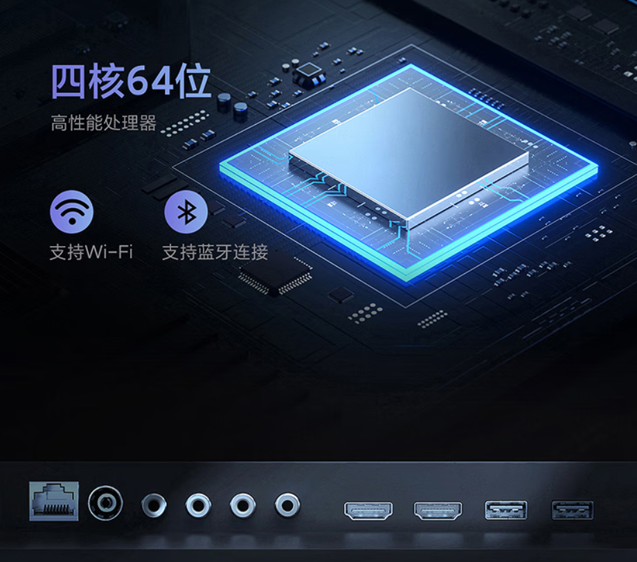 处理器和接口方面,小米电视EA75搭载的是四核64位处理器,支持WiFi、支持蓝牙连接,有2个HDMI、2个USB。