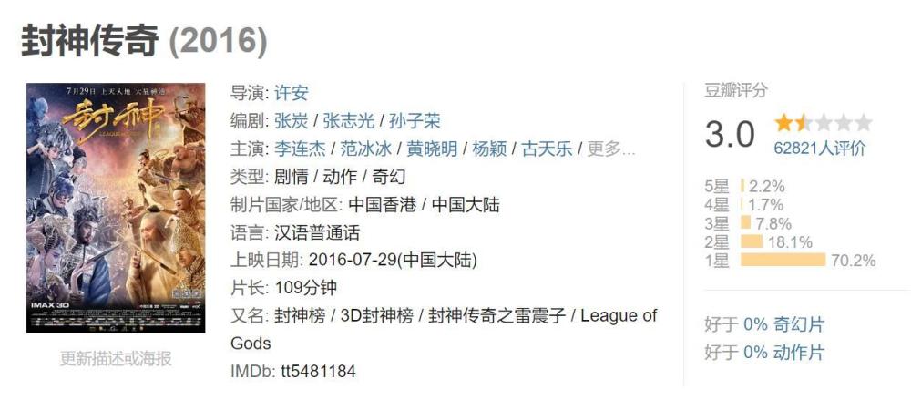 2020年,《封神榜·妖灭》,豆瓣评分3.3;