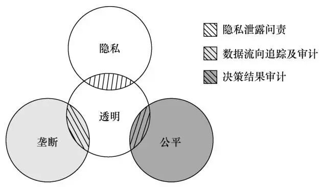 图2???数据透明对隐私、垄断和公平问题的促进作用示意图