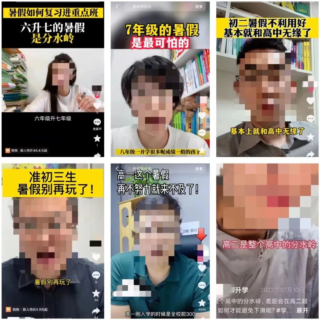 伴随高考填报志愿、中考录取、期末家长会等消息,家长们对孩子学业的关注,在这个盛夏达到顶峰。日前,一组“暑假最可怕”截图,火热传播于各社交平台,也不断搅动着家长的情绪。视频中,“老师”一脸严肃的表示着,各个年级的暑假有多么“可怕”。所谓“可怕”,无非是指暑假如果没有认真补习、超前学习,就容易落后。而从小学一年级到高中,所有暑假都成了“分水岭”,开学都会“一个天上一个地下”。而家长们在这些内卷氛围下,生怕自己少了一步,让孩子掉了一大截。