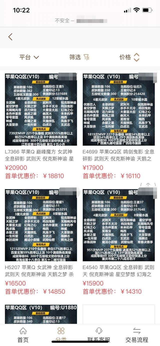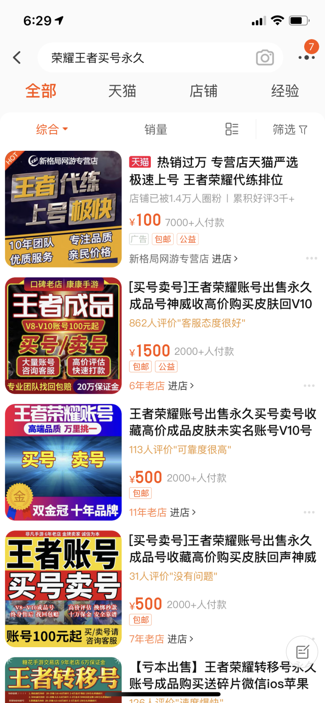 成年人实名账号,真的那么容易买到吗?记者以“买号”“王者荣耀号”“买号永久”等为关键词在淘宝、闲鱼、交游猫APP等多个平台上搜索,均能发现不少商家在兜售网游账号。在某月销量超过2000的网店内,客服告诉记者,店内所有成年人账号都已经过实名认证,用户可以从门店提供的账号清单中,选自己喜欢的段位、系统、区服对应的账号下单。