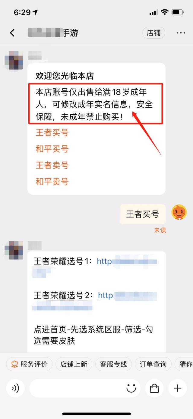 记者发现,在不少网店内,均提示“本店账号仅出售给满18岁成年人,可修改成年实名信息,安全保障,未成年禁止购买!”但在整个购买过程中,商家并未核实记者的真实年龄,甚至有的在记者主动表示“未成年”时,还帮记者想办法“破解”机制。
