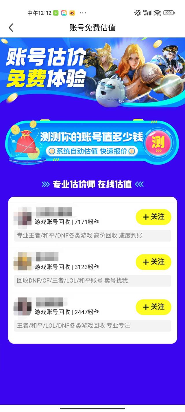 比如,在闲鱼的游戏交易频道,就提供“游戏账号估价”的免费服务,用户输入自己《王者荣耀》账号的区服、贵族等级,英雄、皮肤、五级铭文数量等信息,即可一键估价并直接在平台上出售。平台还提供《英雄联盟》《穿越火线》等游戏账号的估价和买卖服务。