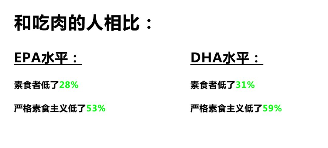 素食者的Omega-3脂肪酸(主要DHA和EPA)水平更低,数据来源④