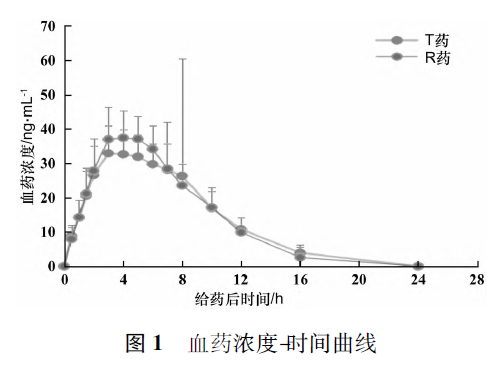 健康受试者皮下注射重组人生长激素受试制剂和参比制剂后的血药浓度-时间曲线见图1?