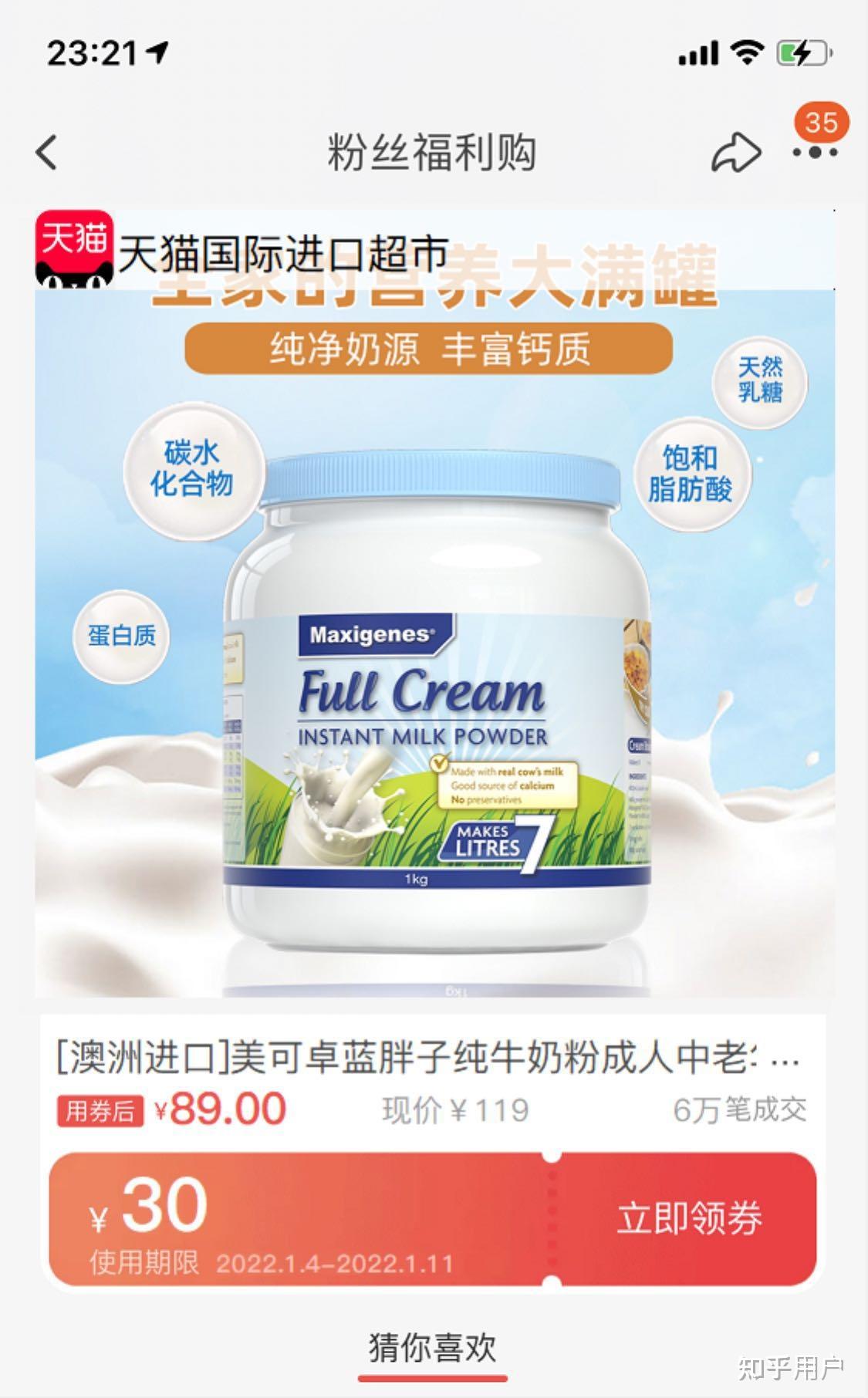 价格:蓝胖子奶粉我是通过微信机器人领优惠券买的,原价是119元,有个30元券和7.6的返利 ,到手只花了81.4元。https://xg.zhihu.com/plugin/0d4cbe160277ea46be15b9995570d5d0?BIZ=ECOMMERCE