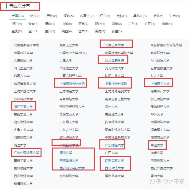 然后就可以查看开设该专业的院校,如下图所示,标注蓝色的部分(我用红色框起来了)就是所有符合要求的院校。
