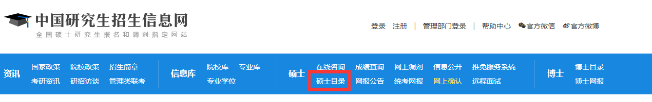 我来操作下,打开研招网,点击硕士下的硕士目录,如下图所示:
