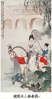 贵妃的三个姐姐个个妖艳异常,时常出入宫廷,每逢宴会场场必到,而且精心打扮,陪侍皇帝和贵妃左右。三人中长相最美丽的虢国夫人,特别善于逢场作戏、搔首弄姿,她时而笑闹不止,时而满目娇羞,有时甚至当着杨贵妃的面和皇帝眉来眼去,打情骂俏,令玄宗皇帝想入非非,春心荡漾。