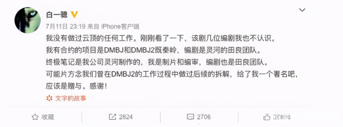 不过,或许是因为剧太烂了,开播不到一天,著名监制白一骢也出来澄清不是自己的作品,迅速撇开关系。因为他被署名了,所以立刻否认不管自己的事,明哲保身啊。