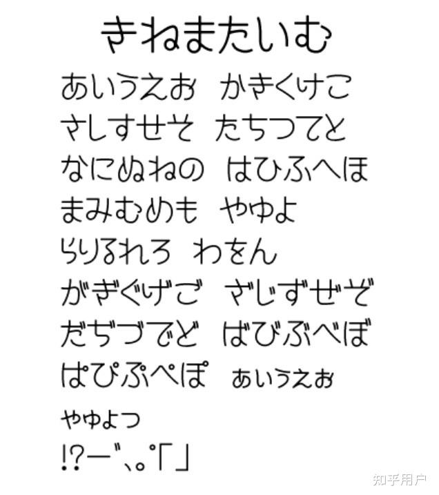 キネマタイム样字シネマ明朝かな / シネマゴシックかな。网上常看到的两款电影字体,来源不详,字库只有平假名。浊点打成两个实心小圆圈的处理是其亮点,但容易与半浊点混淆。