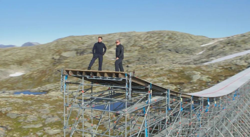 如片中名场面悬崖跳伞,搭建摩托跑道的建筑材料都是通过直升机运送到悬崖上的,光是建造成本就是是一笔巨大的费用。