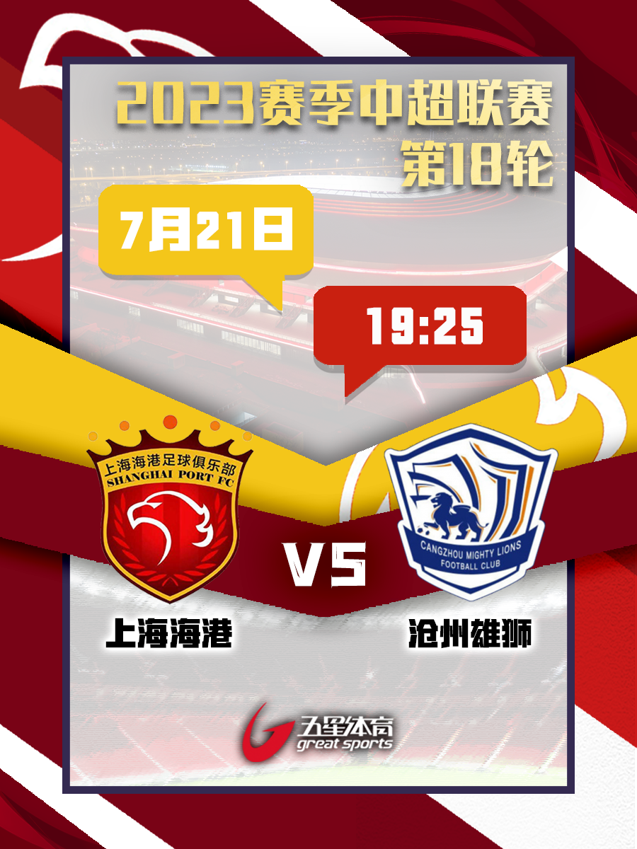 本周五,上海海港将回到主场对阵本赛季排名中游的沧州雄狮,希望海港能够延续良好势头,在主场收获三连胜!五星体育届时也将为您带来本场比赛的直播,欢迎您准时关注!