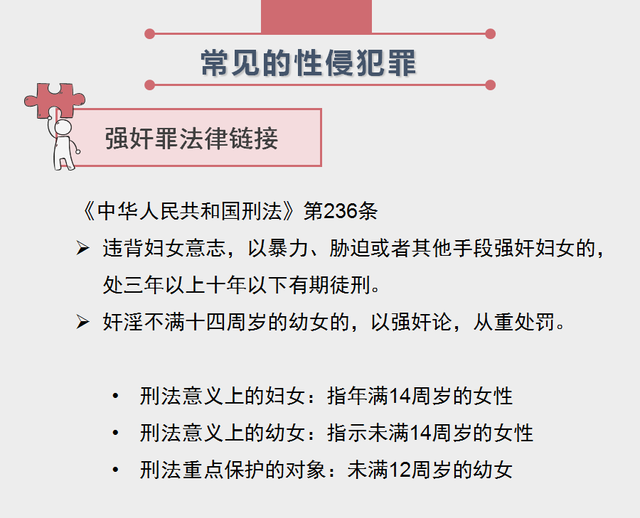 为什么不早点让孩子明白,在生活中确实存在着可能伤害他们的人。父母可以模拟各种生活场景,来和孩子讨论遇到疑似性侵危险的情况下如何应对。孩子 9 岁左右时,父母(家长)可以开始给孩子讲解相关法律了。