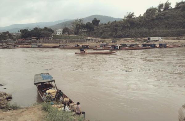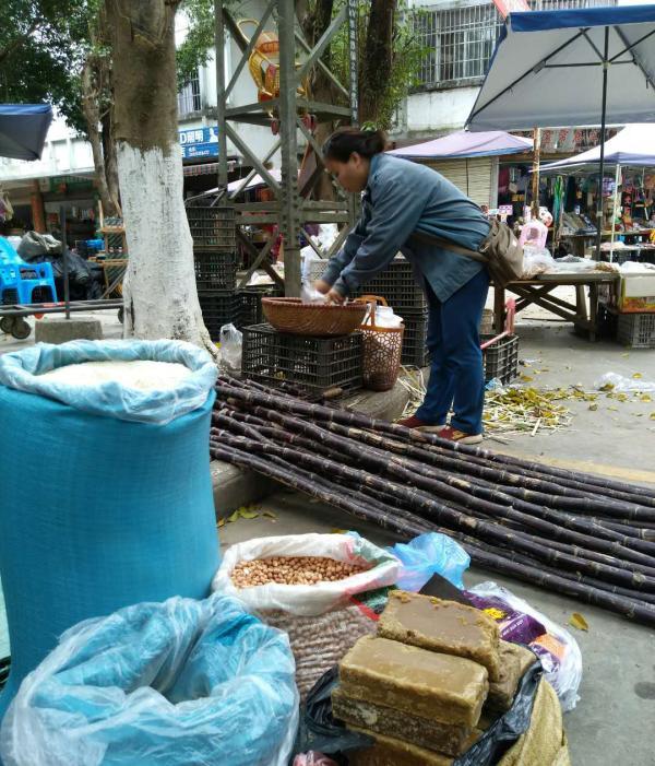 就在我们去往红河渡口进行调查的时候,正好遇到两位从越南那边偷渡过来中国做生意的越南妇女,她们正坐在岸边,等待着货物的运达。渡河的过程一般是先运人再运货,首先是坐船的人先过来,接着再用船把她们售卖的物品运过来。这些货物大多数是越南那边的农副产品,主要包括甘蔗、花生、红糖、干笋、大米、包谷种子等等。