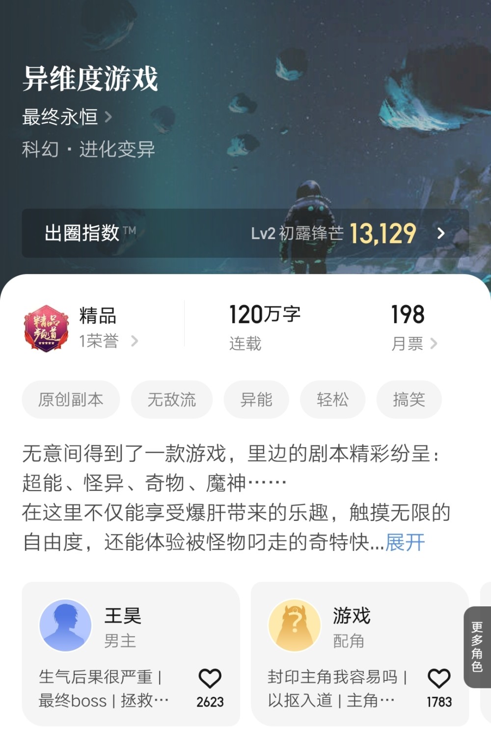 最终永恒曾在2018年凭借小说《深空之下》拿到过这一年的科幻银河奖最佳网络小说奖,喜欢科幻作品的或许也可以去试试。